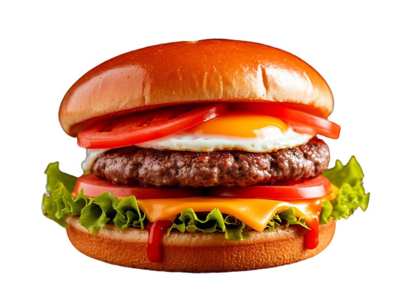 Наш фирменный бургер с котлетой из говядины, жаренным яйцом, свежими овощами, придающими пикантность красным и жареным луком, сыром Чеддер, кетчупом и соусом Бургер. *Внешний вид продукта может отличаться от представленного на изображении.