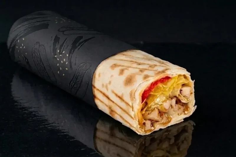 Курица, лаваш, помидоры, картофельные чипсы, чесночный соус. *Внешний вид продукта может отличаться от представленного на изображении.